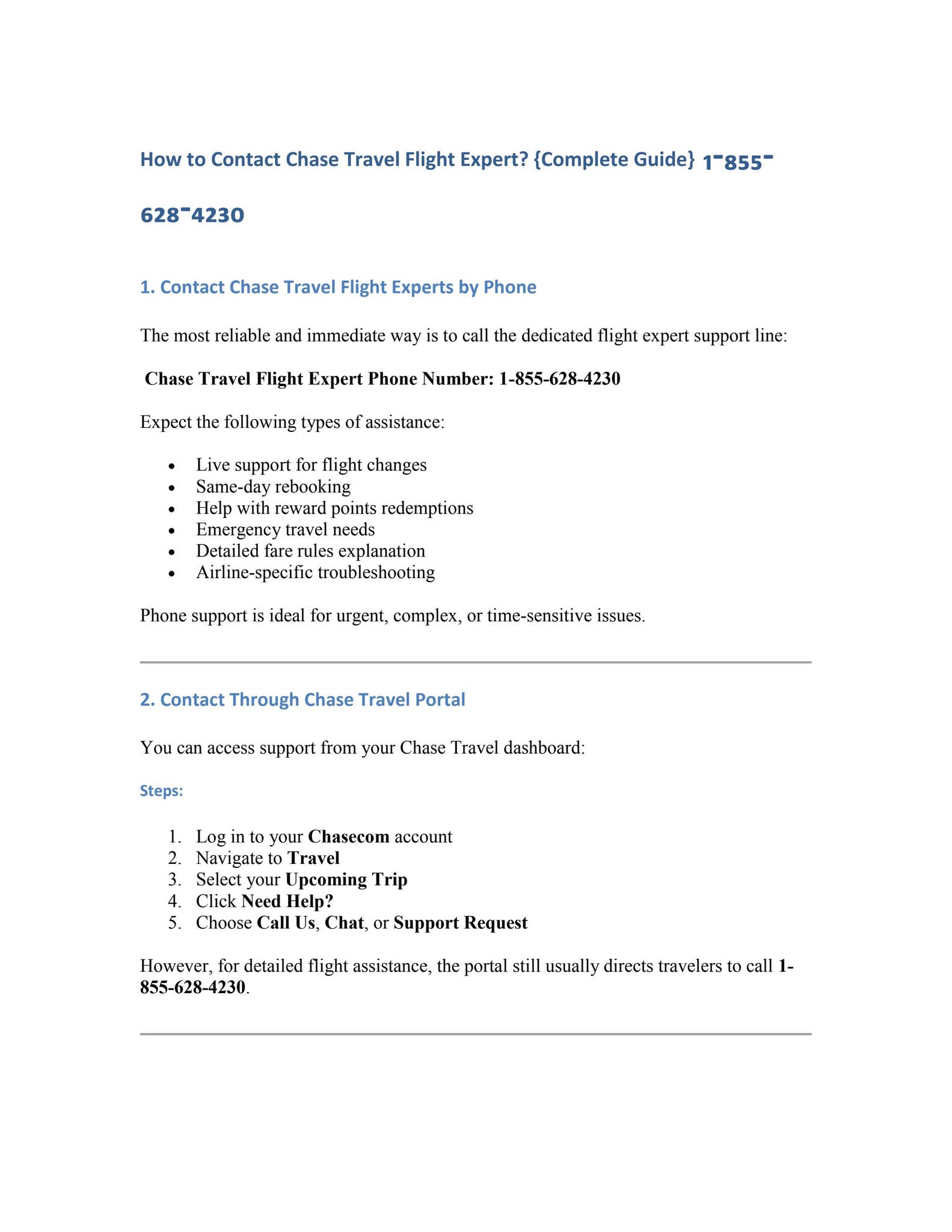 This guide explains how the Chase Travel helpdesk works, when to call, what services they