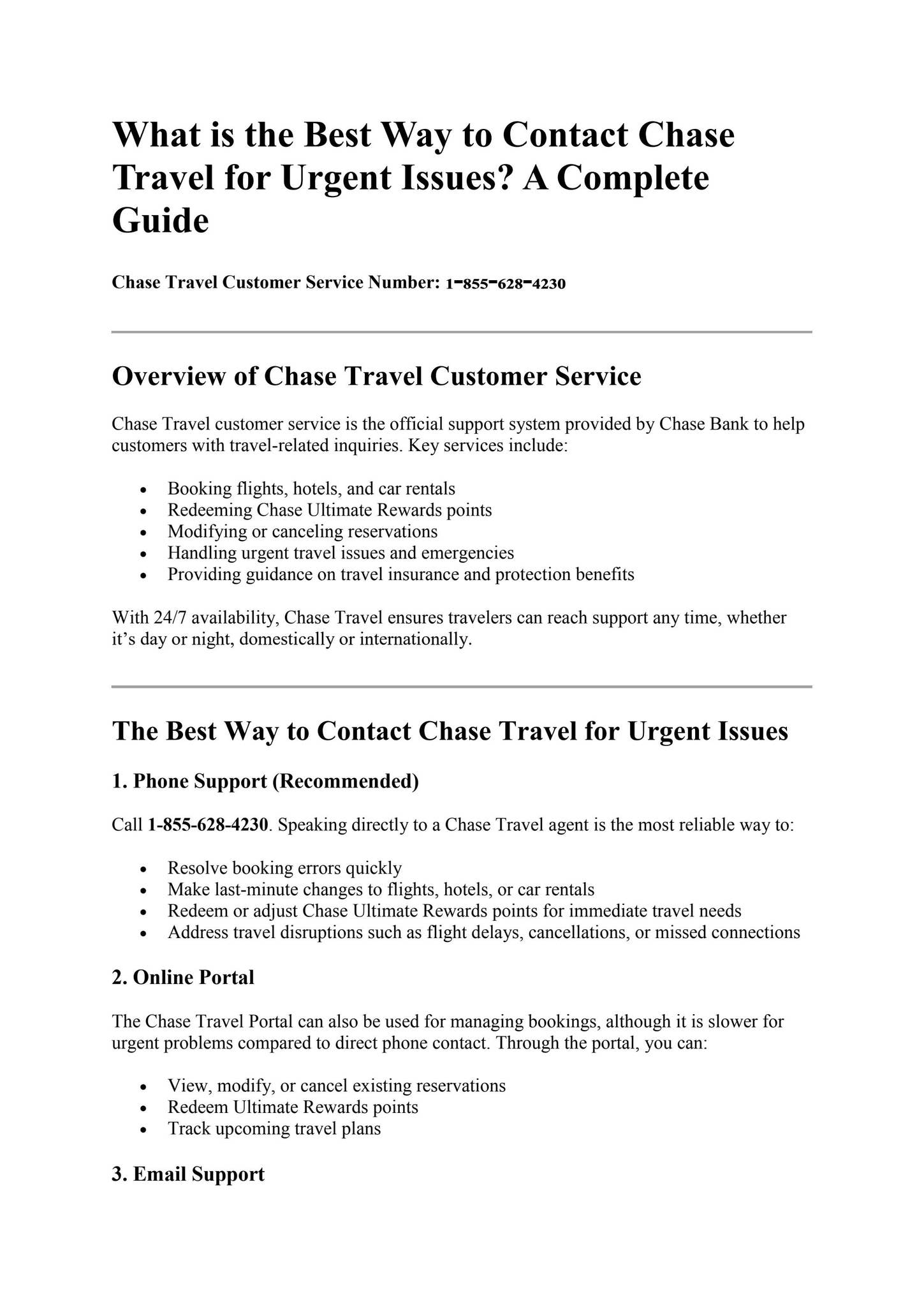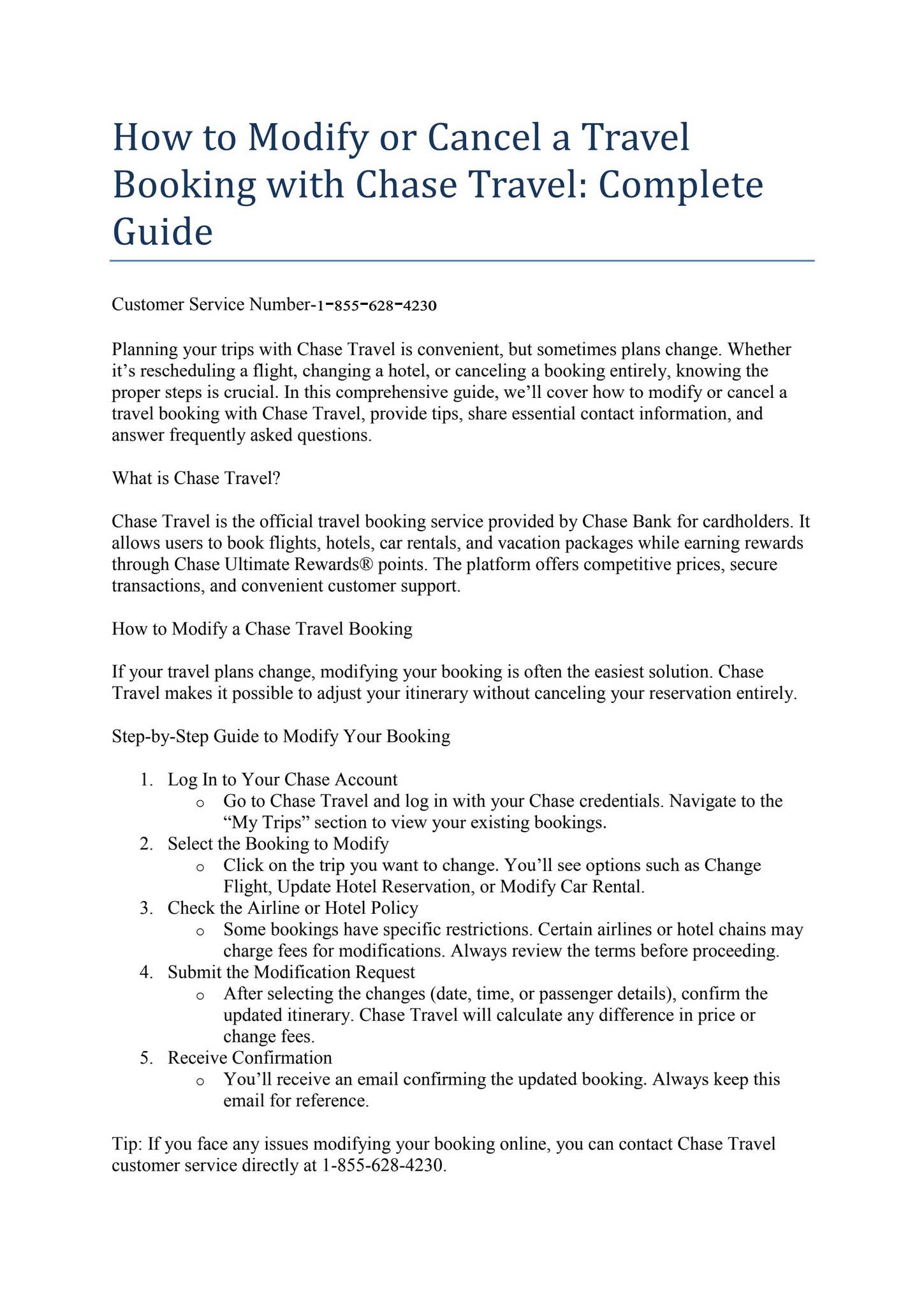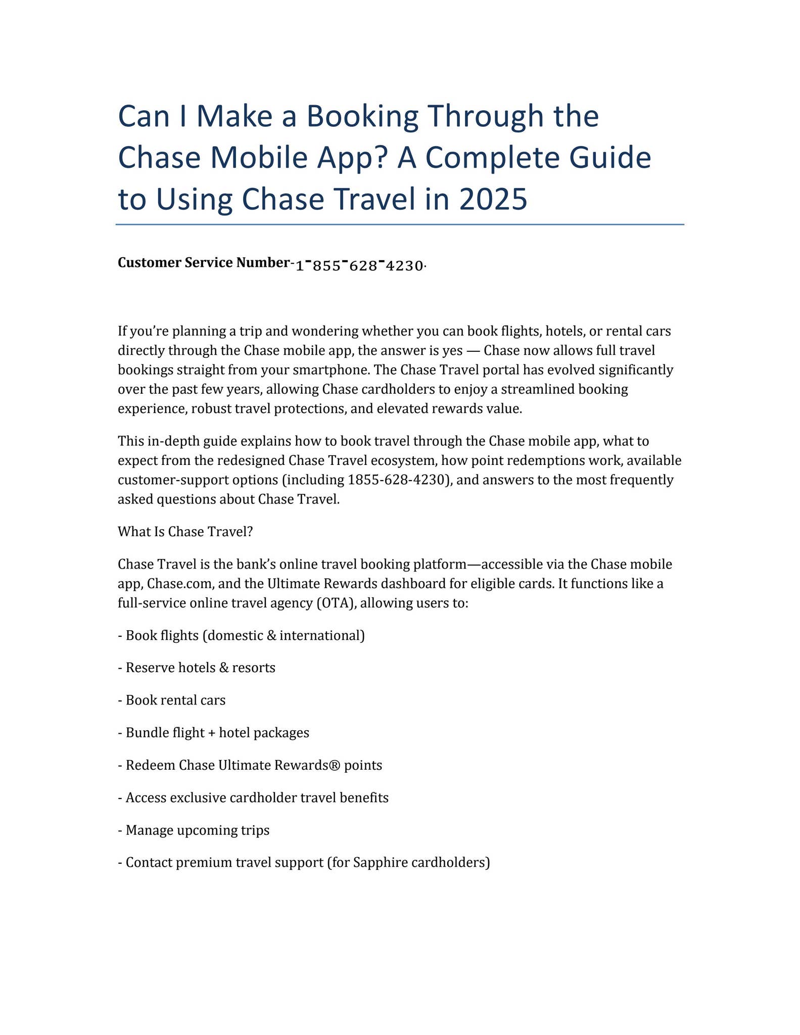 Chase Travel Customer Service Number: 1-855-628-4230