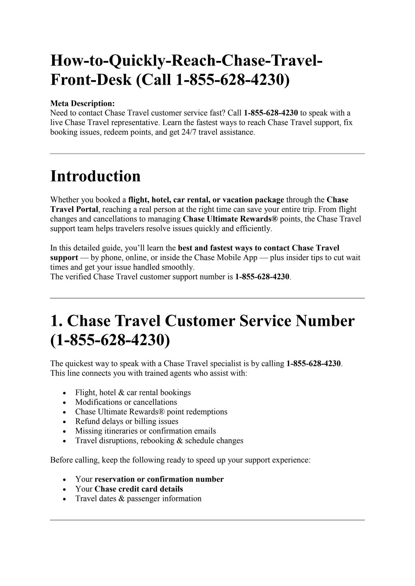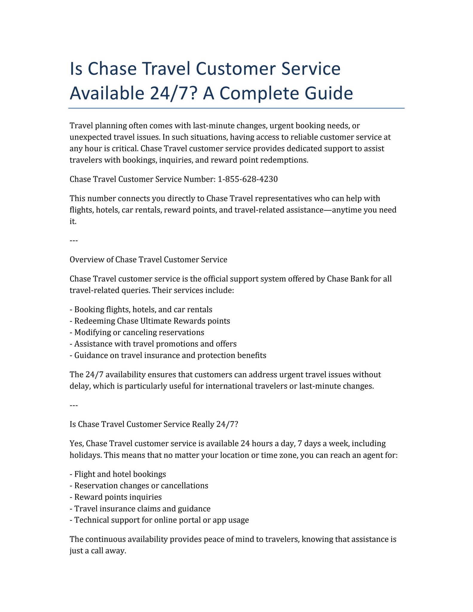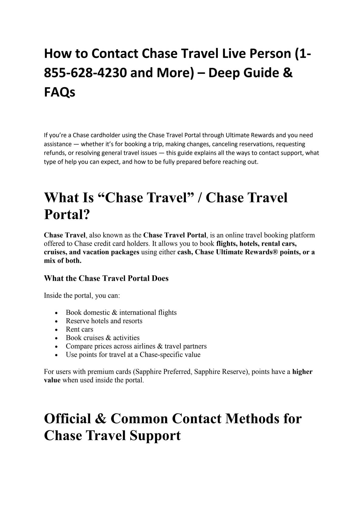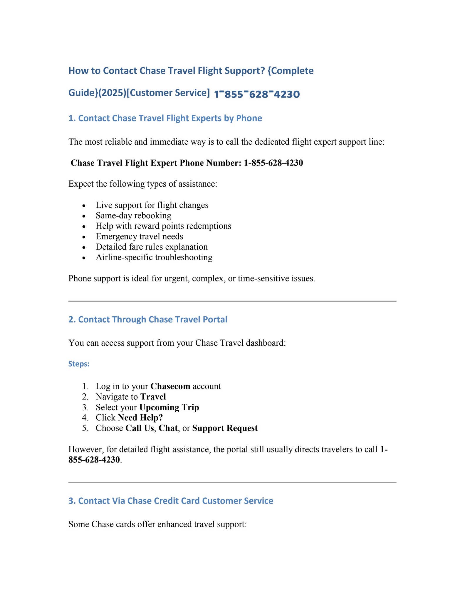 Chase Travel Customer Service Number: 1-855-628-4230